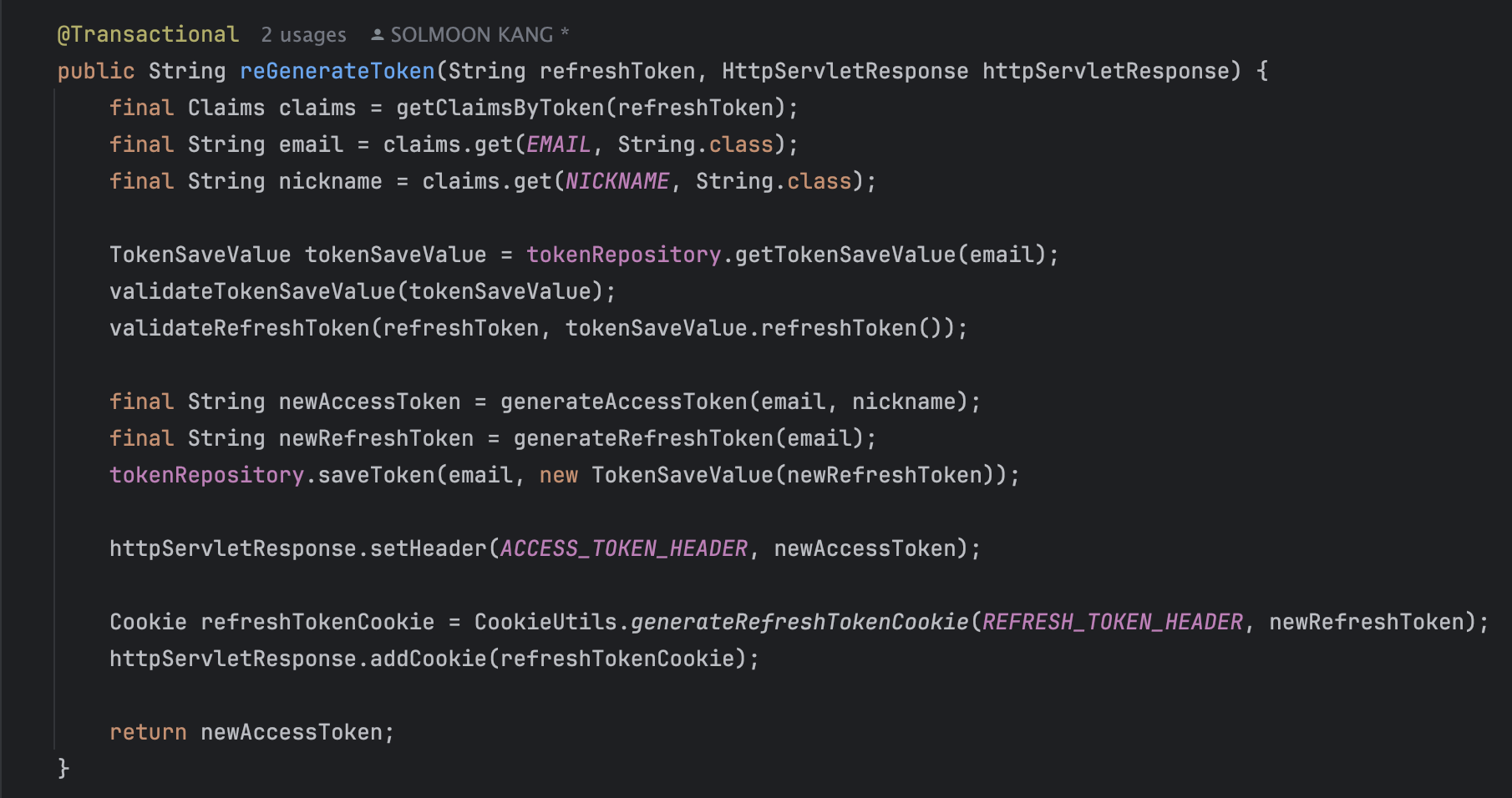 그리고 JWT는 강제로 만료시킬 수 없다는 점으로 인해서 발급되는 액세스 토큰의 만료 시간을 짧게 설정하고 리프레시 토큰을 도입하게 되었습니다.